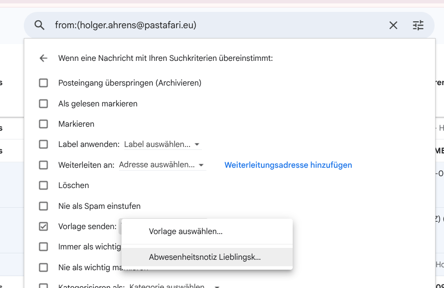 Achtung: die über Filter ausgelösten automatischen Antworten werden von Gmail für jede Mail versendet.
